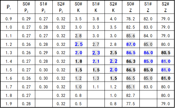 注:P1為進(jìn)口壓力(MPa);P2為出口壓力(MPa);K為主閥開程(mm);Z為噪聲聲壓級(dB)。