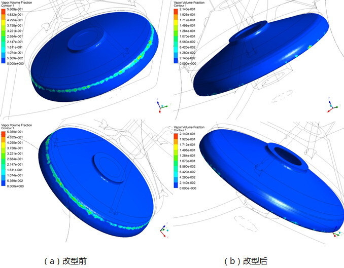 改型之后的減壓閥空化性能得到明顯地改善,氣泡的大體積分?jǐn)?shù)由0.537減小到0.214,減幅達(dá)60%以上。